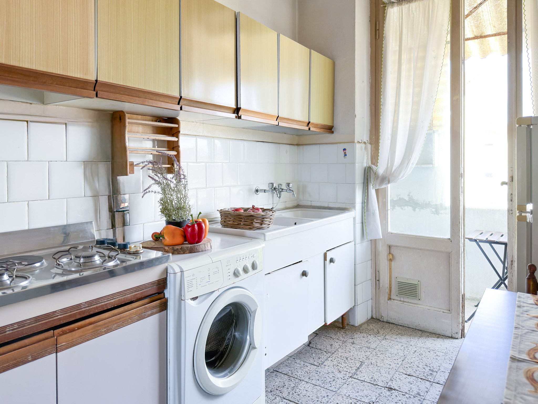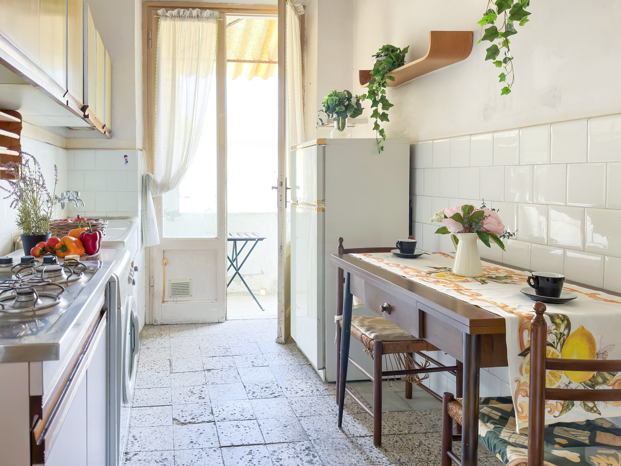 Cucina abitabile con balcone vivibile, dove potrai gustare la tua colazione all’aria aperta.