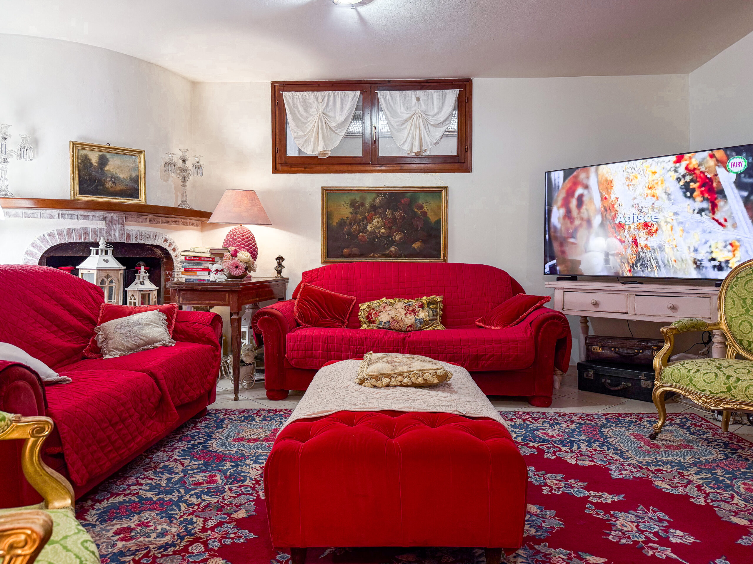 Ampia, calda e accogliente. Con il suo camino, è il cuore della casa.