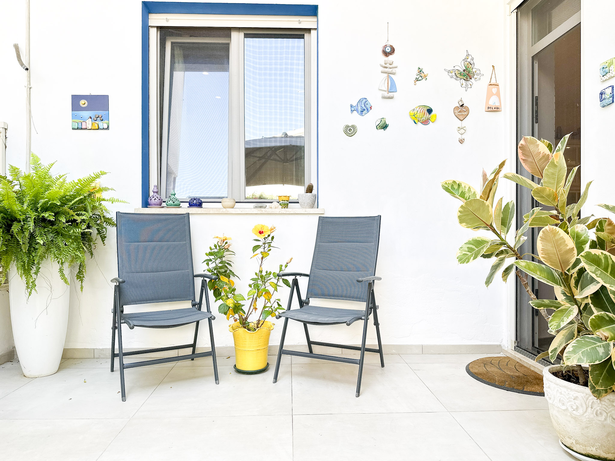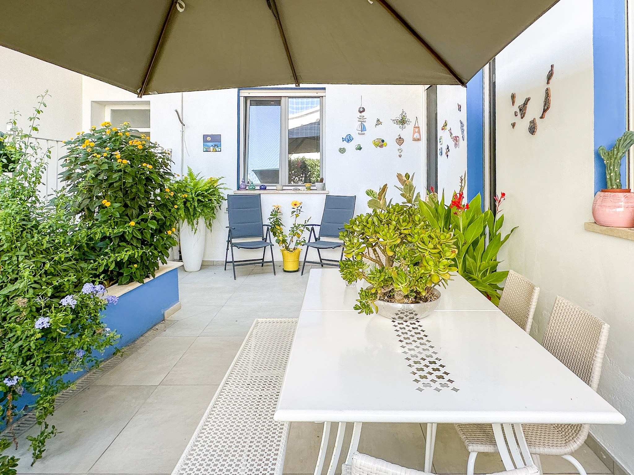 • Porte e Finestre: Le porte interne sono in legno laccato azzurro, con maniglie in acciaio satinato che ne esaltano la raffinatezza. Le finestre in alluminio con doppi vetri garantiscono un ottimo isolamento termico e acustico. Avvolgibili elettrici per ulteriore comodità.