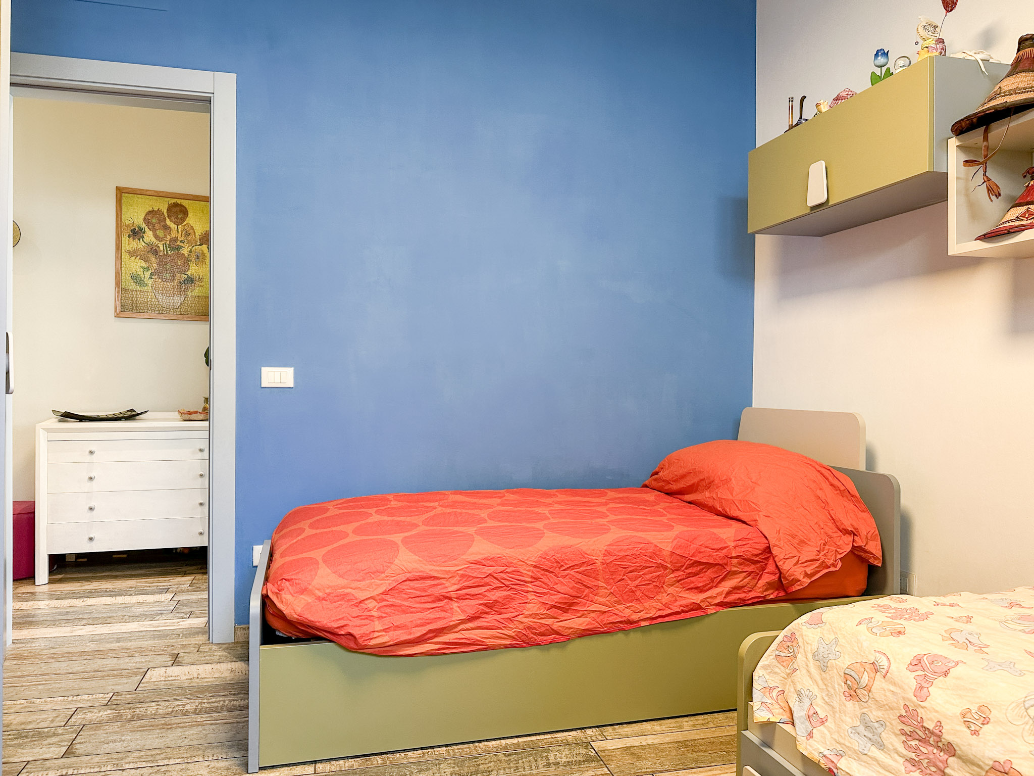 • Camere Matrimoniali: Le camere sono caratterizzate da armadi a muro integrati, progettati per ottimizzare lo spazio e mantenere un aspetto ordinato e pulito.