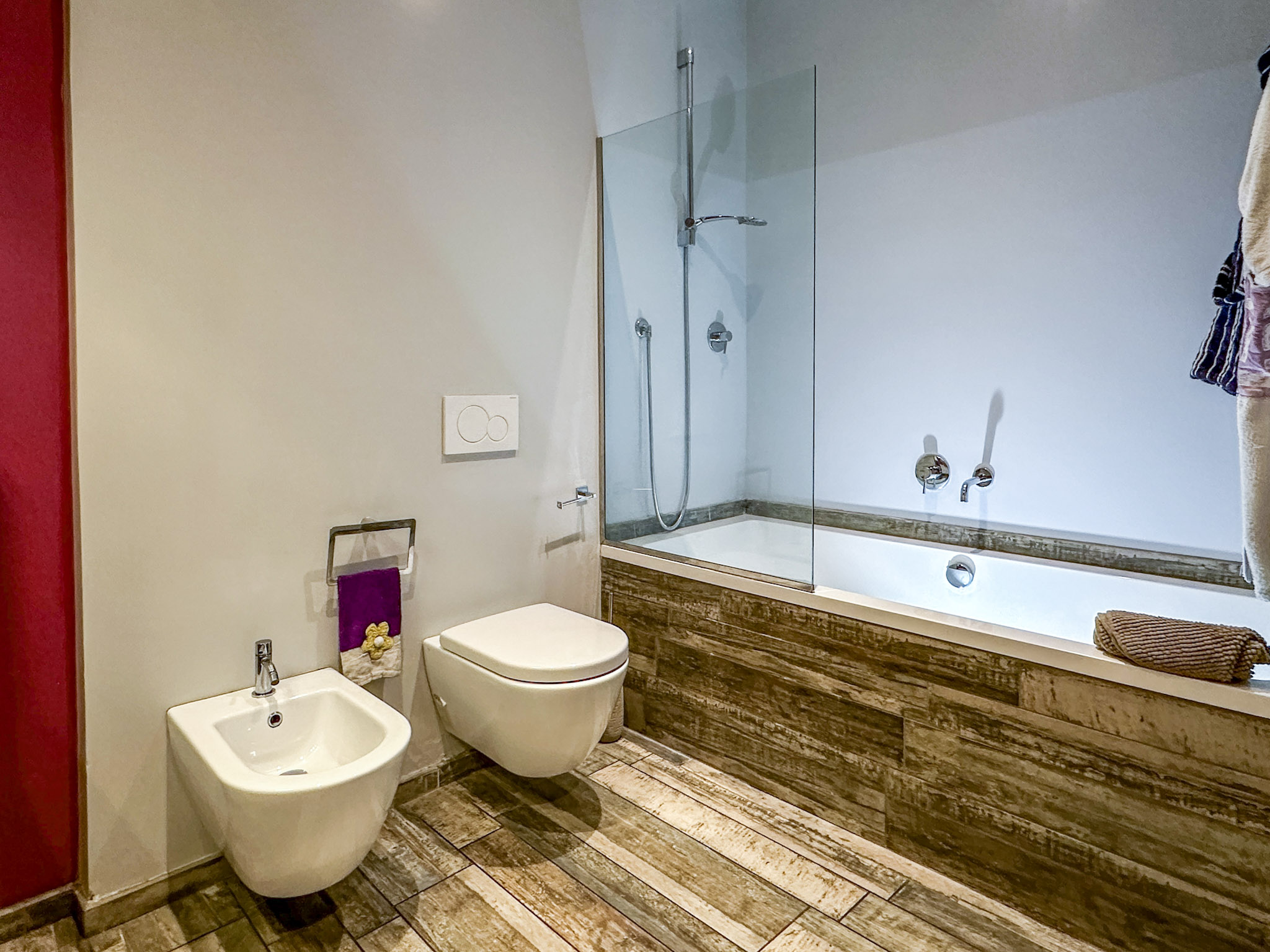 • Bagno con Vasca: Il bagno principale è dotato di una vasca da bagno free-standing, con rubinetteria cromata di design e dettagli che creano un ambiente rilassante e sofisticato.