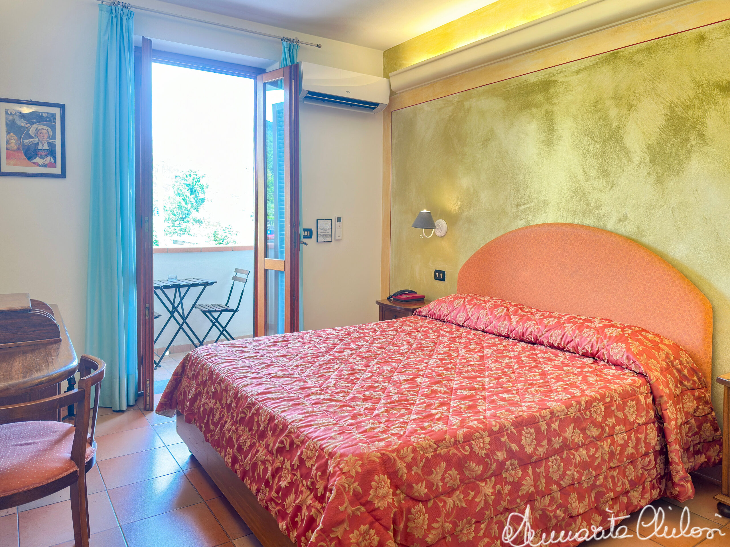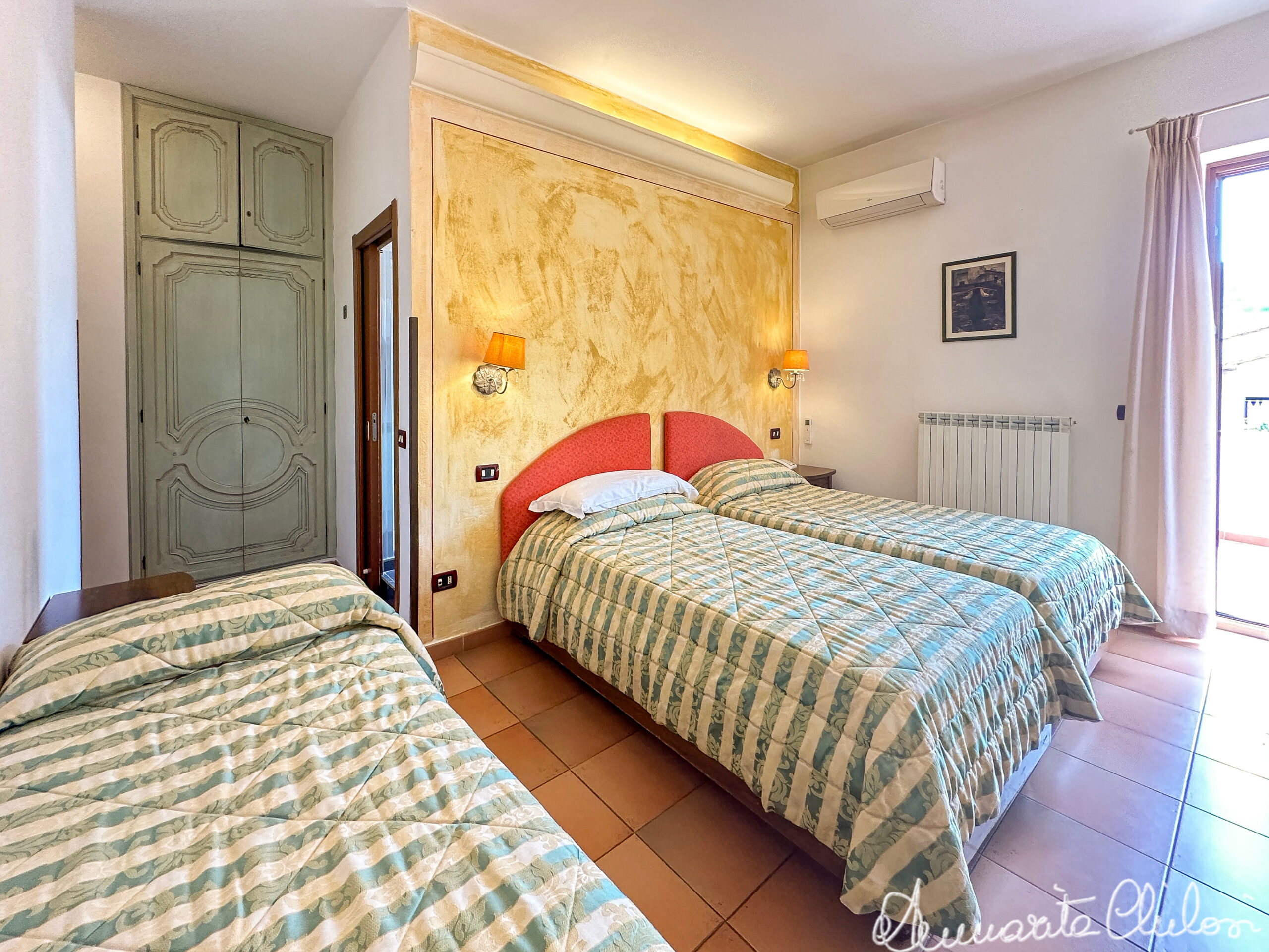 - Camere Eleganti: 16 camere arredate con gusto, dotate di Sky TV, minibar e aria condizionata. Al piano terra ci sono 4 camere di cui 2 con il terrazzo e al 1° piano 12 camere di cui 5 con il terrazzo, di cui due camere possono essere convertite in triple.