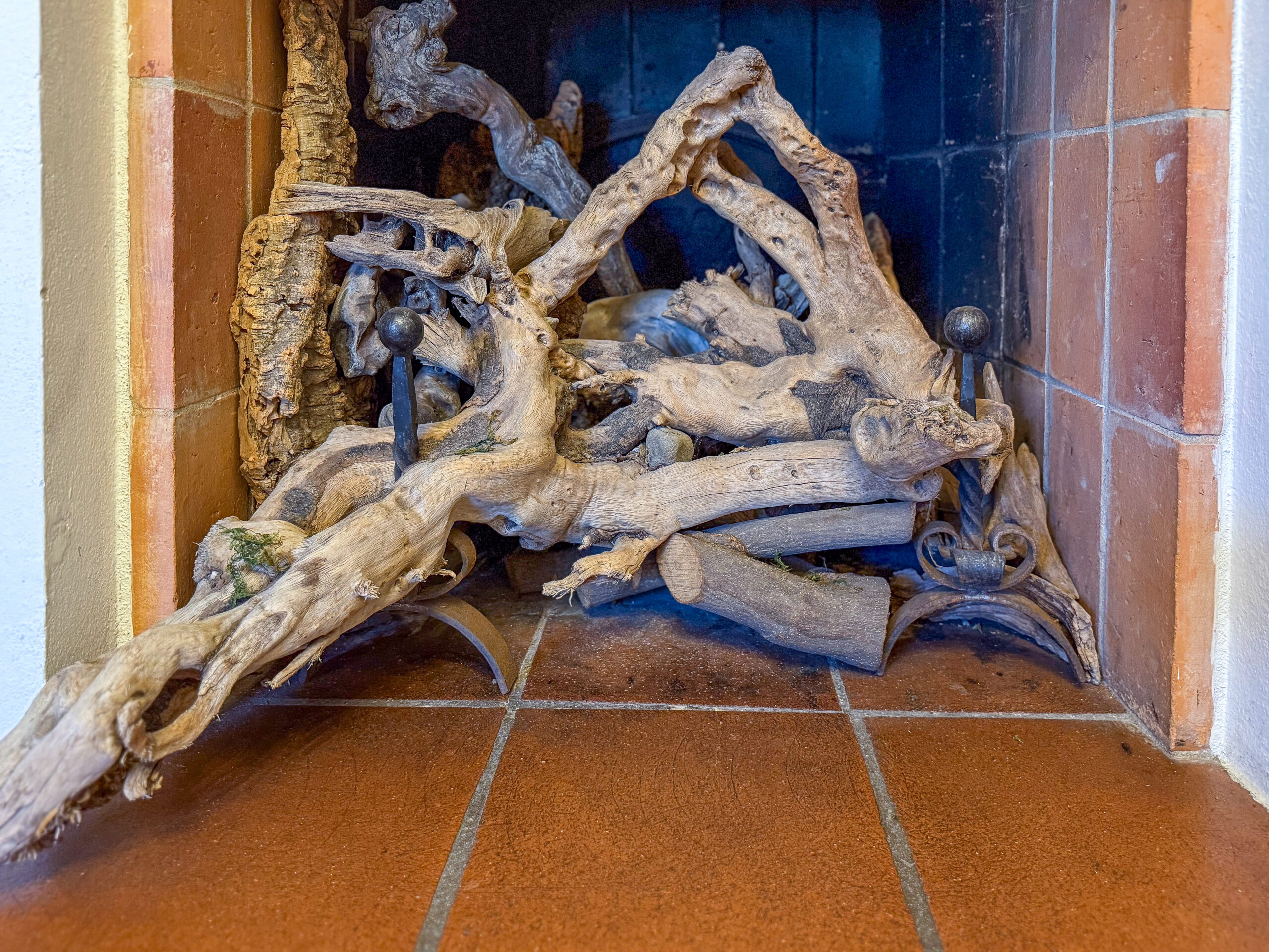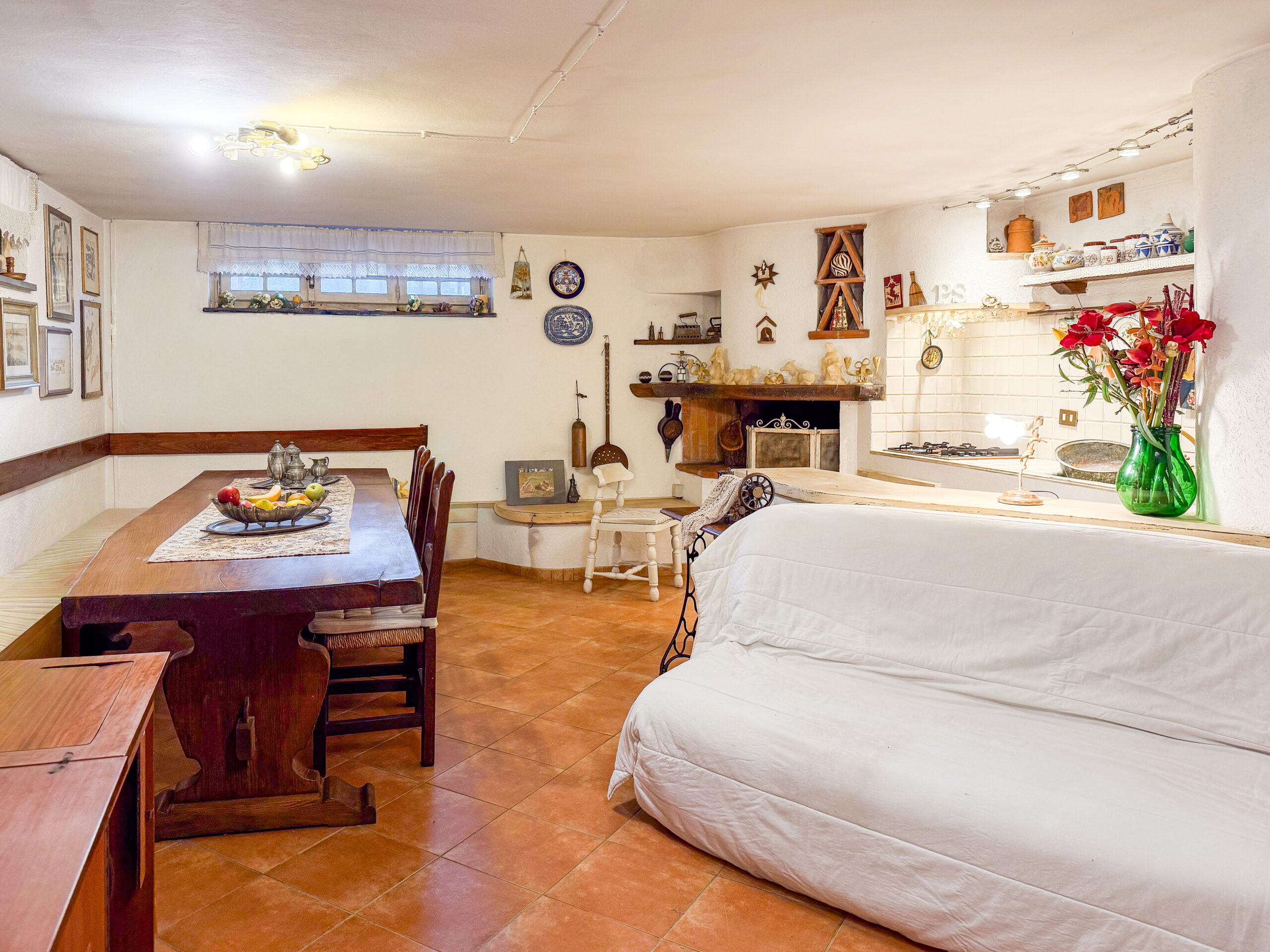 Taverna al piano seminterrato di oltre 30 mq con camino e ripostiglio e una terza cucina.