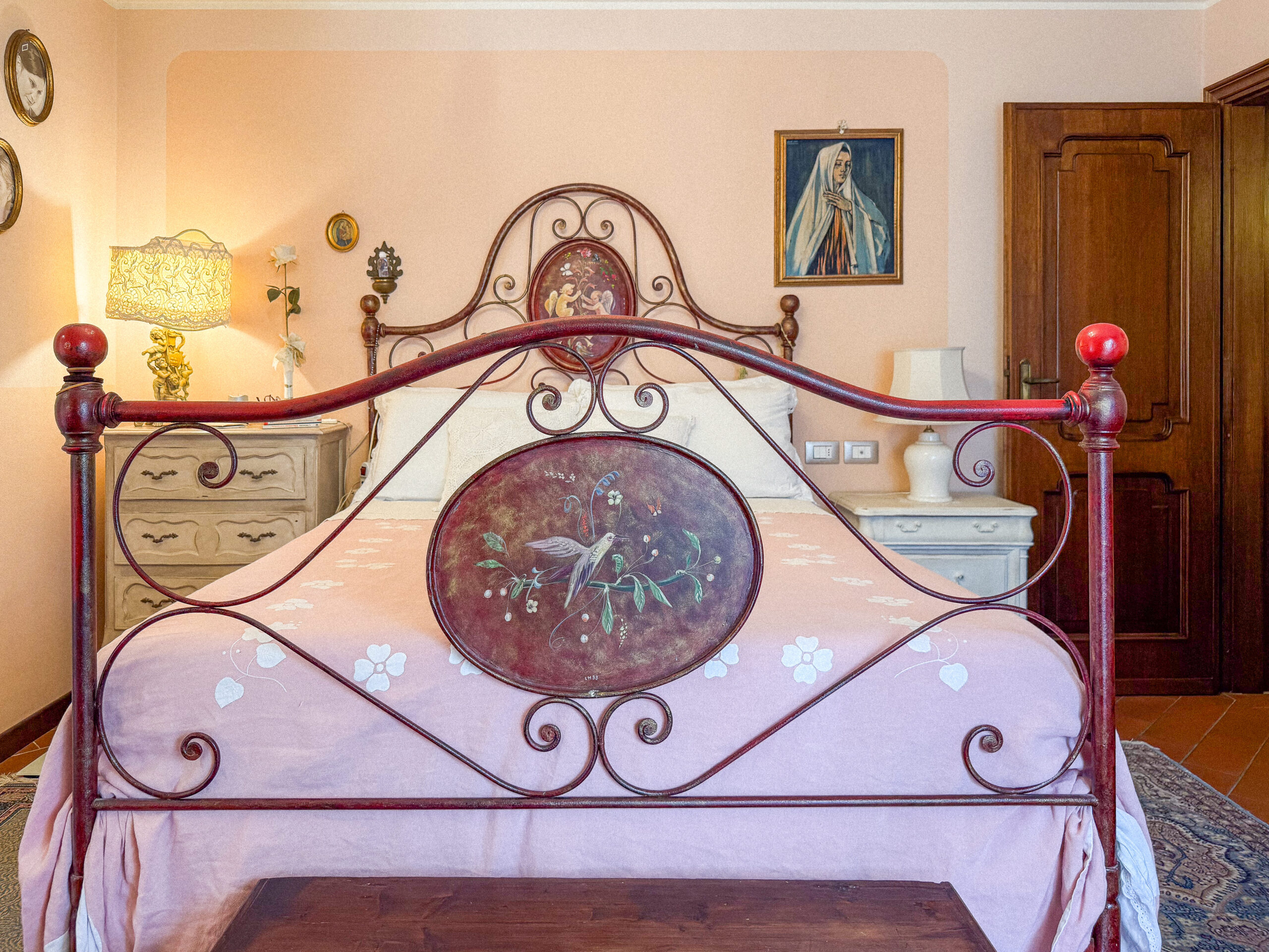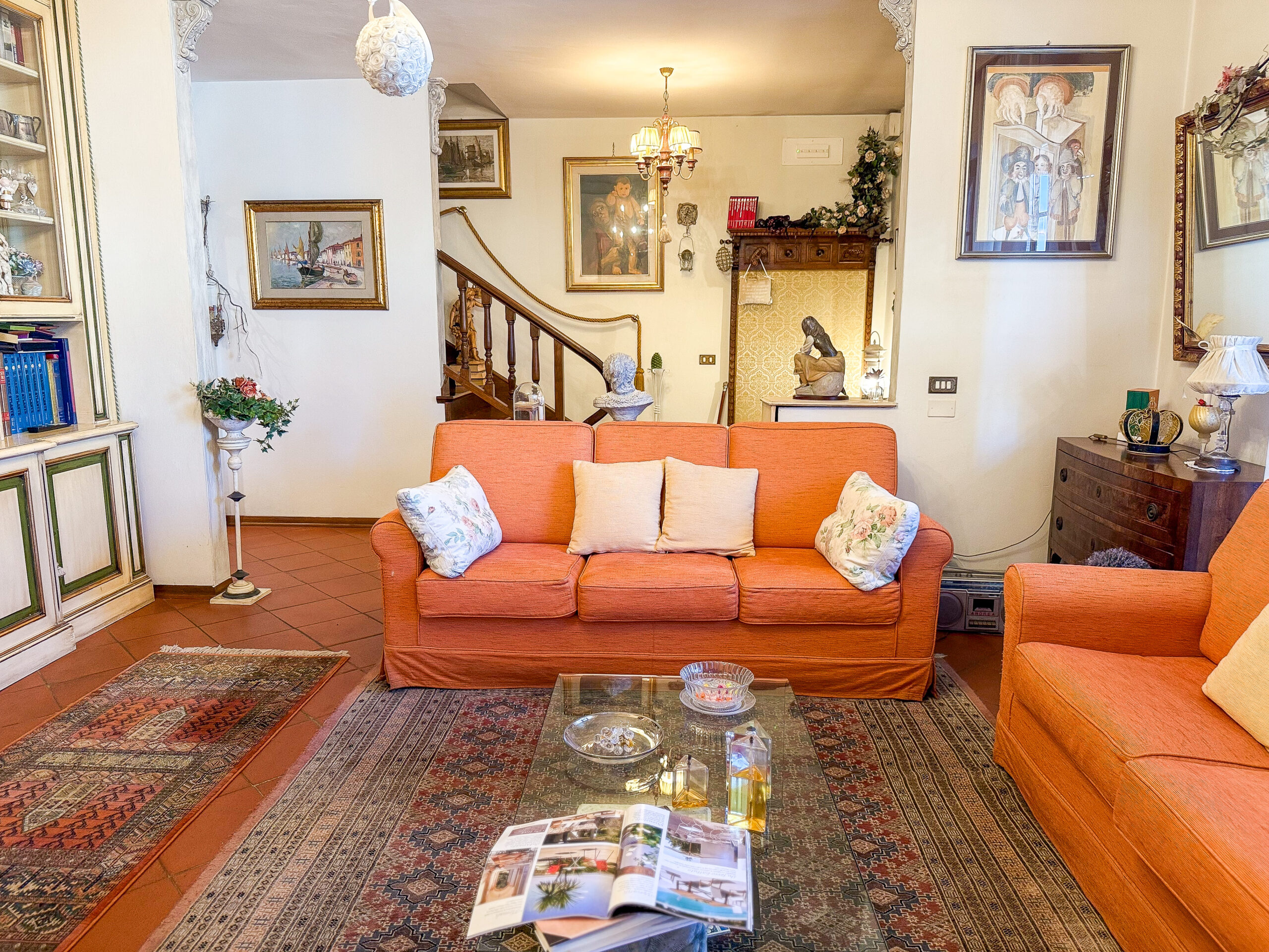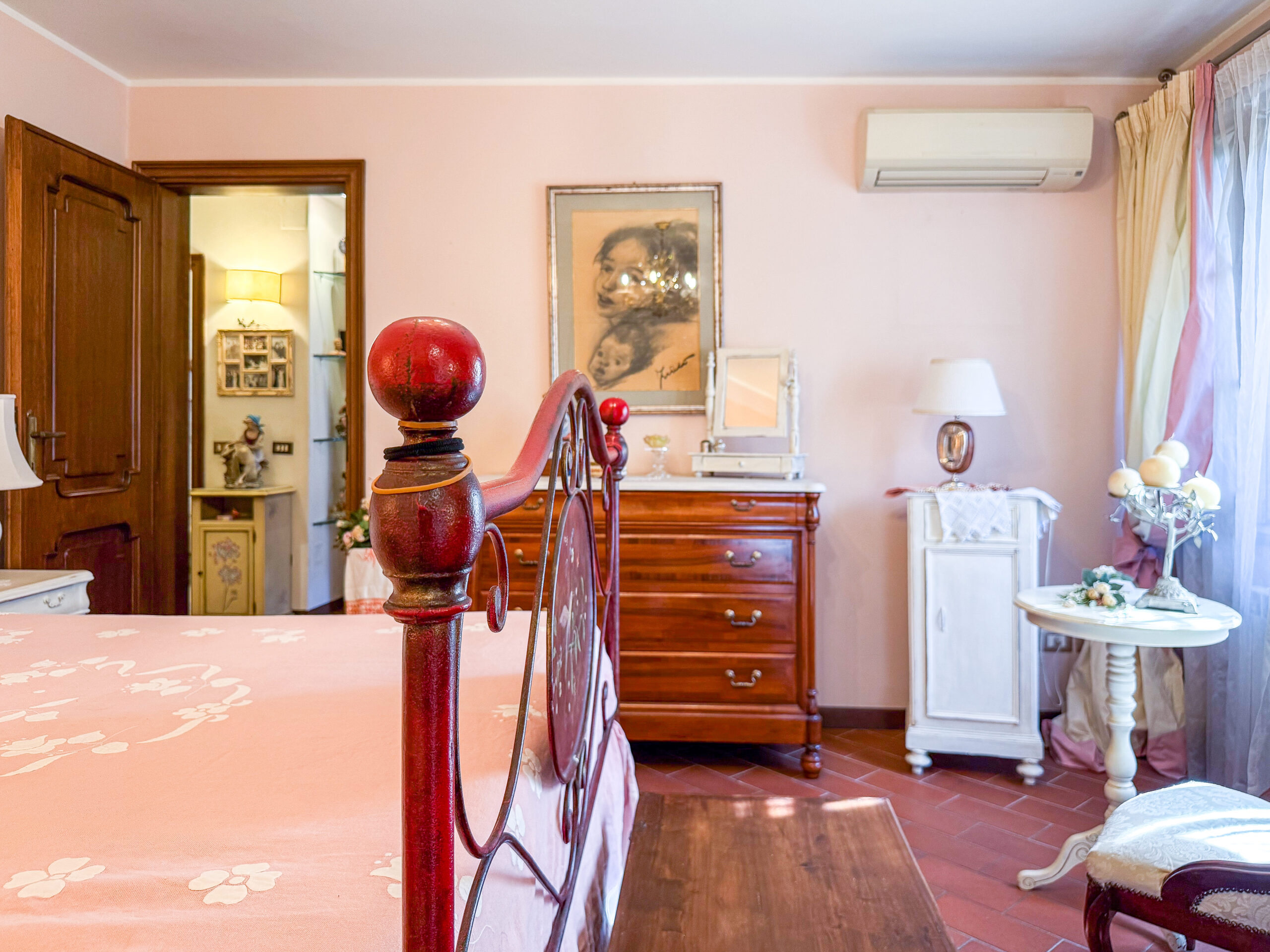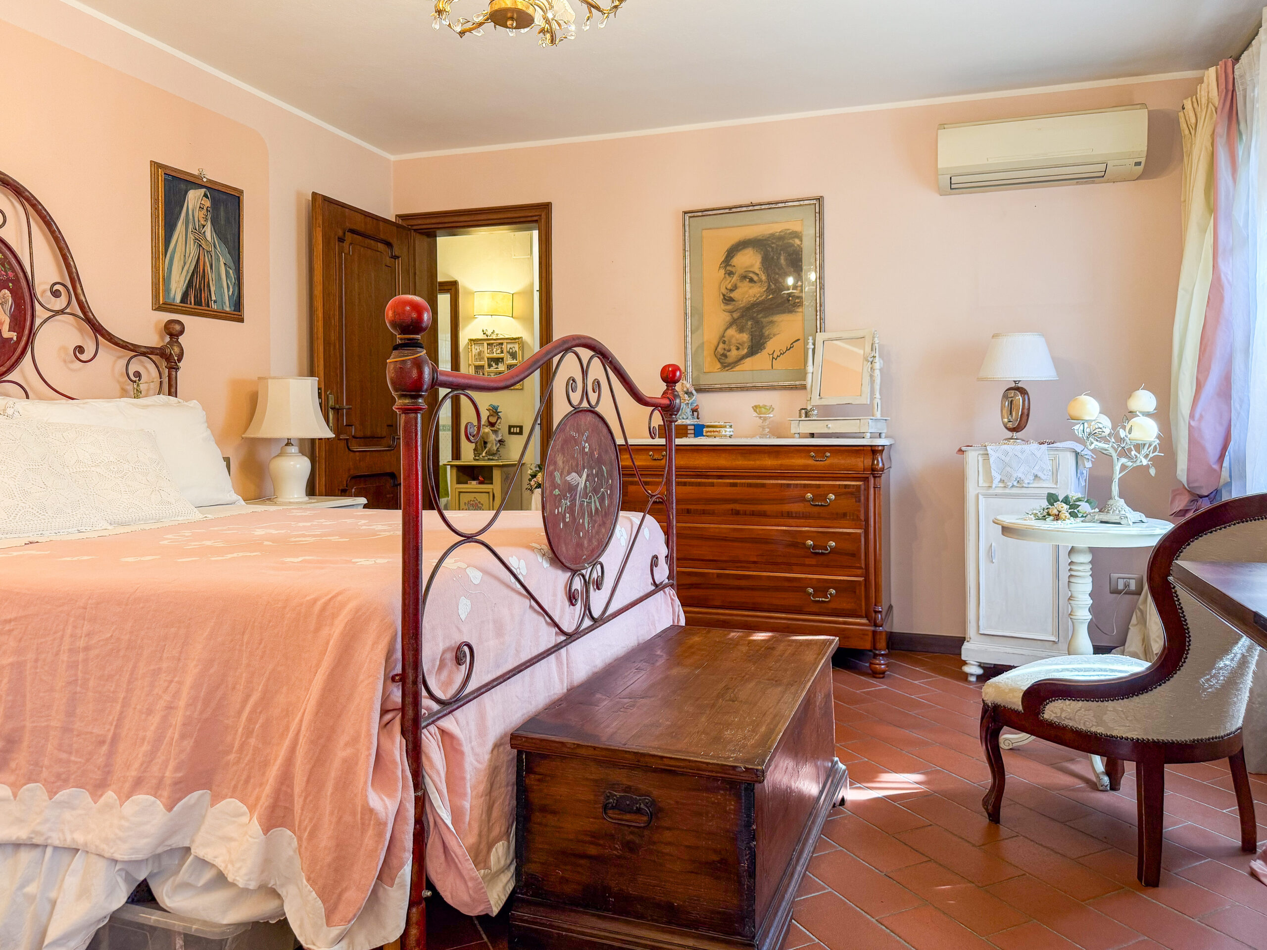 Piano terra con grande soggiorno di oltre 22 mq con camino e finiture in stucco veneziano, sala da pranzo separata, cucina e veranda luminosa, bagno con vasca, locale lavanderia (attualmente studio/camera), ripostiglio e zona notte indipendente con camera matrimoniale, cabina armadio e bagno privato.