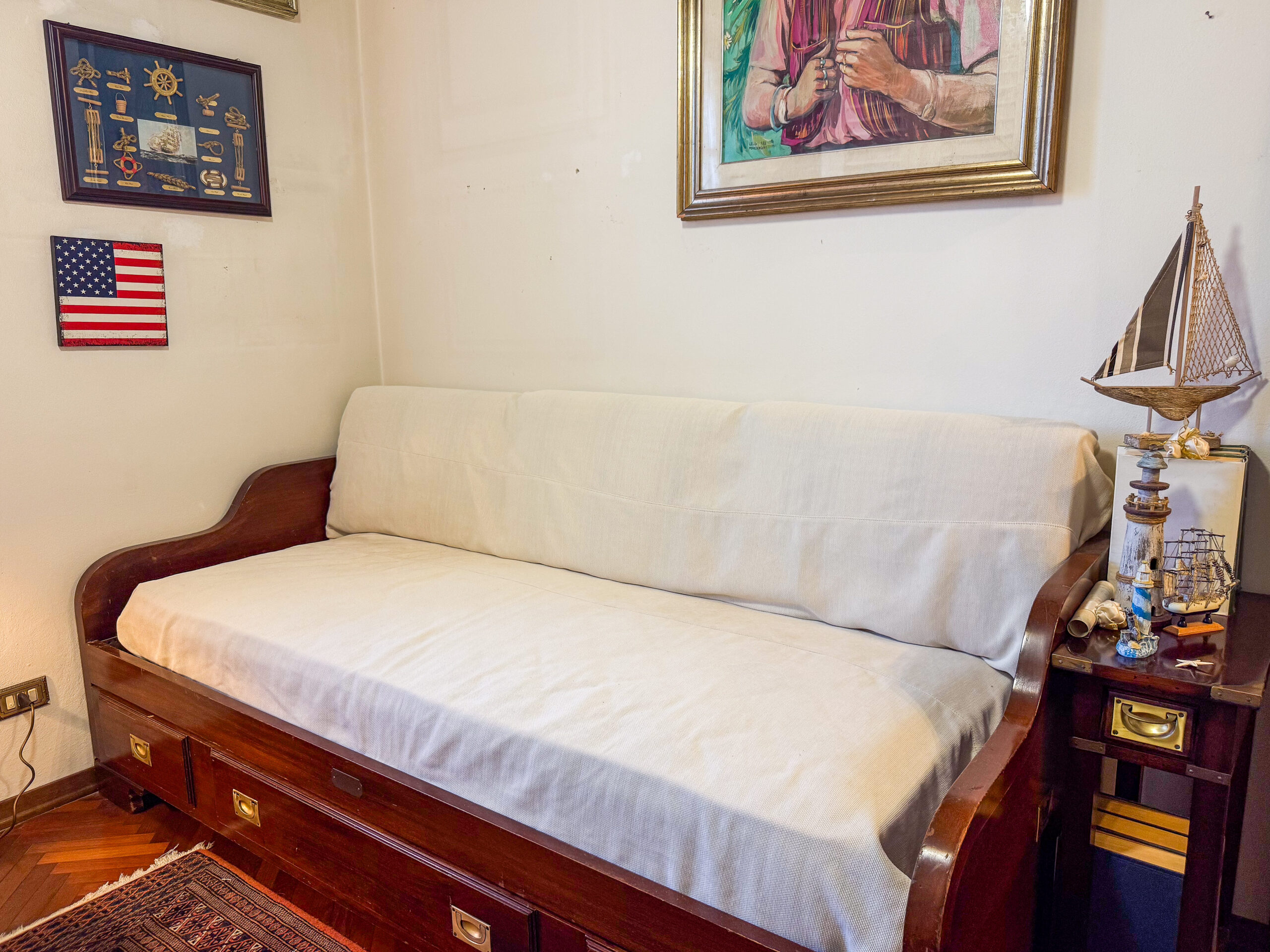 Piano rialzato con studio e balcone, camera singola, seconda zona giorno con angolo cottura, camera matrimoniale, bagno con vasca e due balconi di 4 e 7 mq.