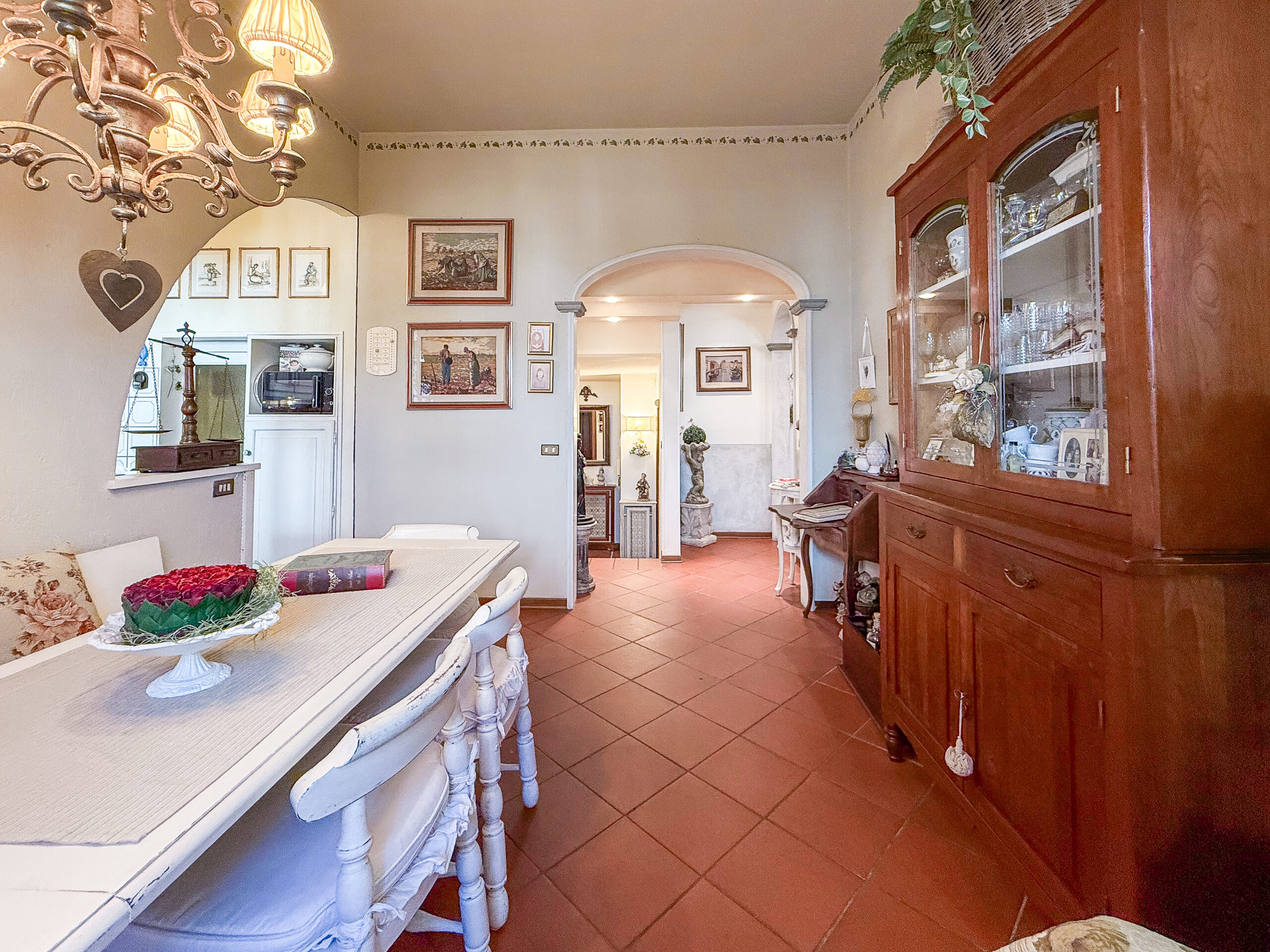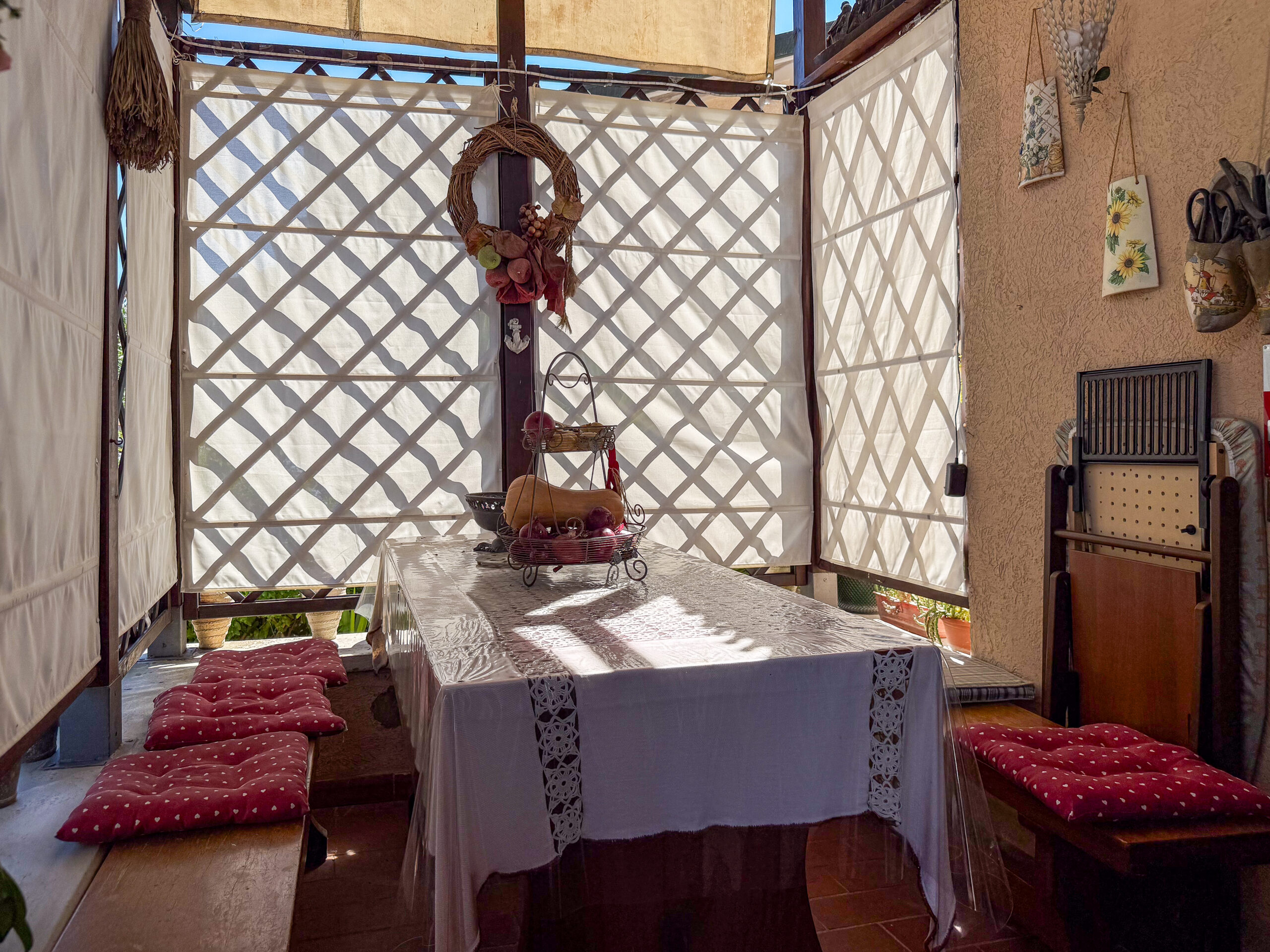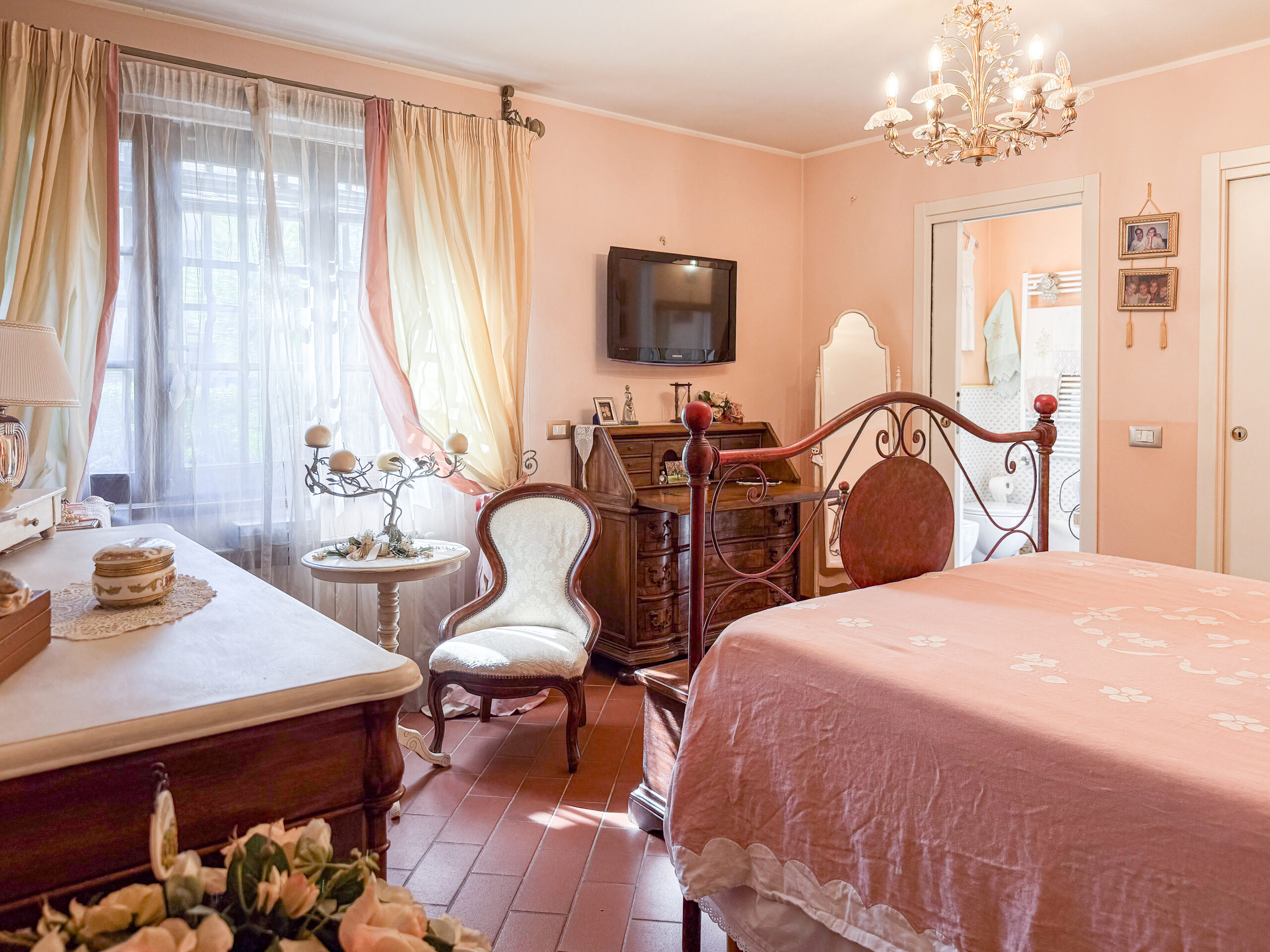 Piano terra con grande soggiorno di oltre 22 mq con camino e finiture in stucco veneziano, sala da pranzo separata, cucina e veranda luminosa, bagno con vasca, locale lavanderia (attualmente studio/camera), ripostiglio e zona notte indipendente con camera matrimoniale, cabina armadio e bagno privato.