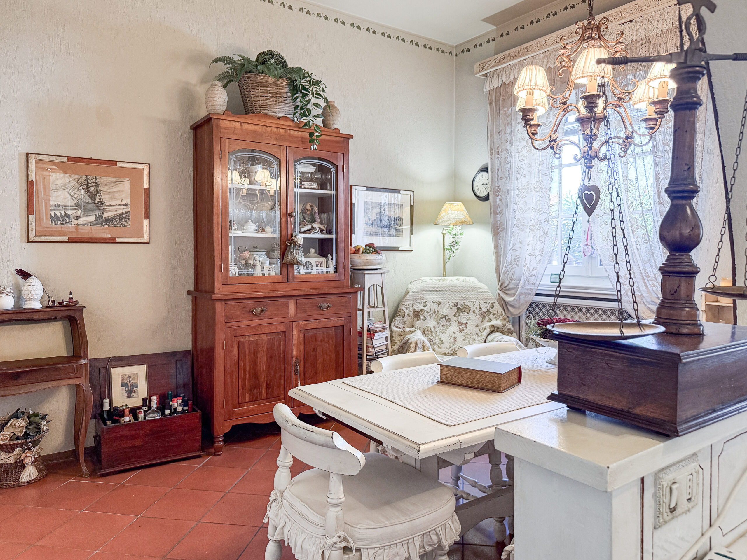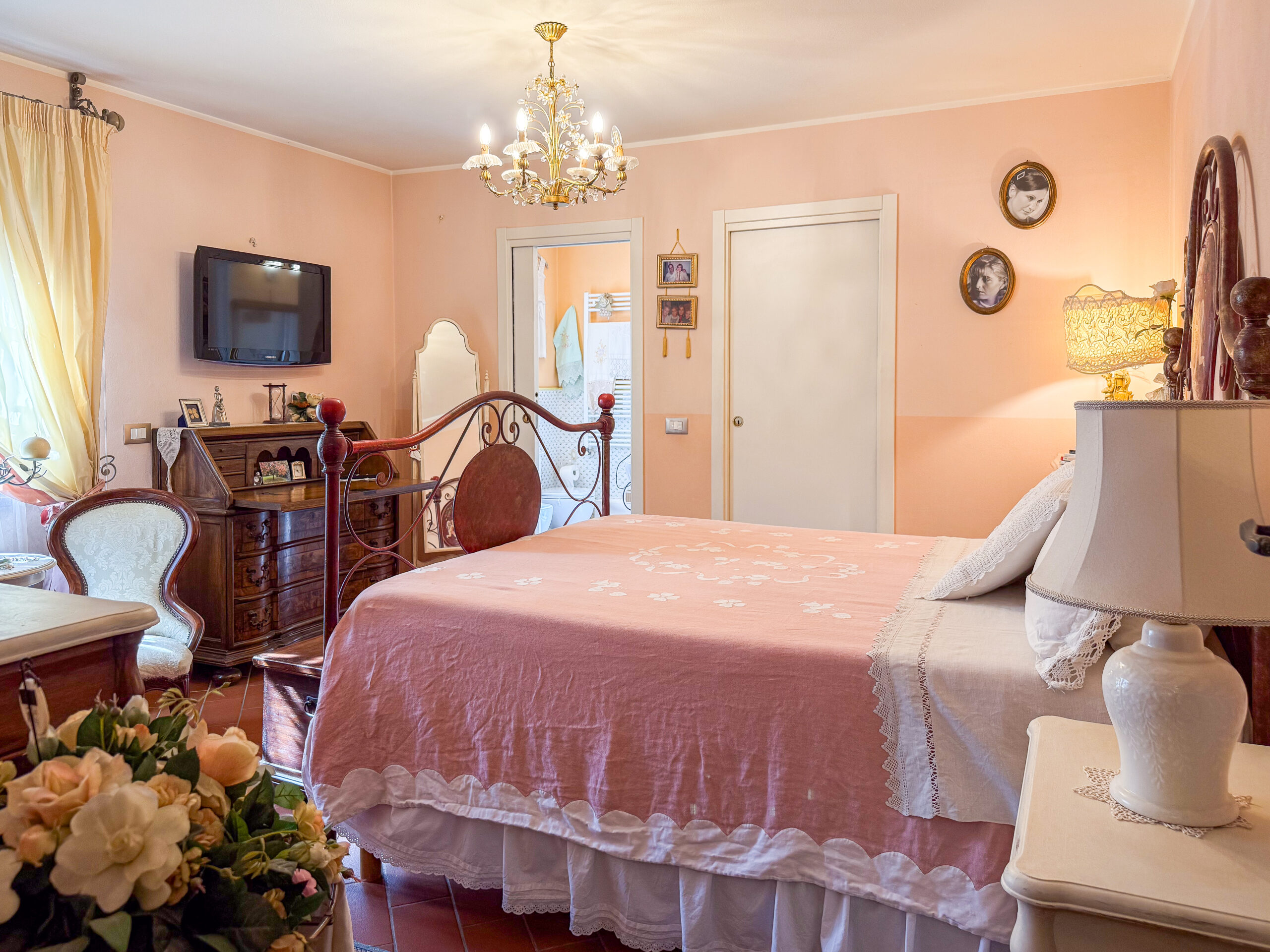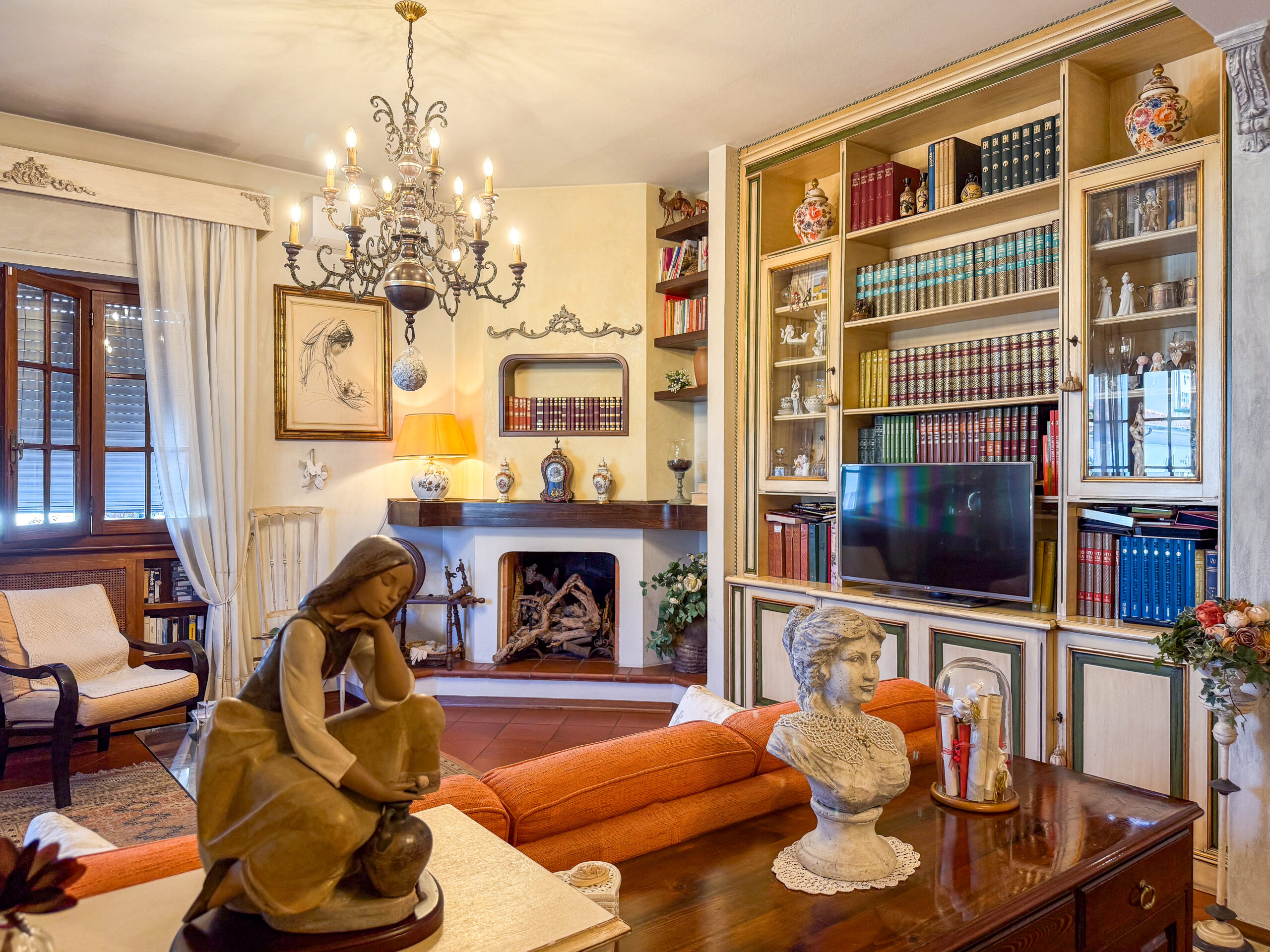 Piano terra con grande soggiorno di oltre 22 mq con camino e finiture in stucco veneziano, sala da pranzo separata, cucina e veranda luminosa, bagno con vasca, locale lavanderia (attualmente studio/camera), ripostiglio e zona notte indipendente con camera matrimoniale, cabina armadio e bagno privato.