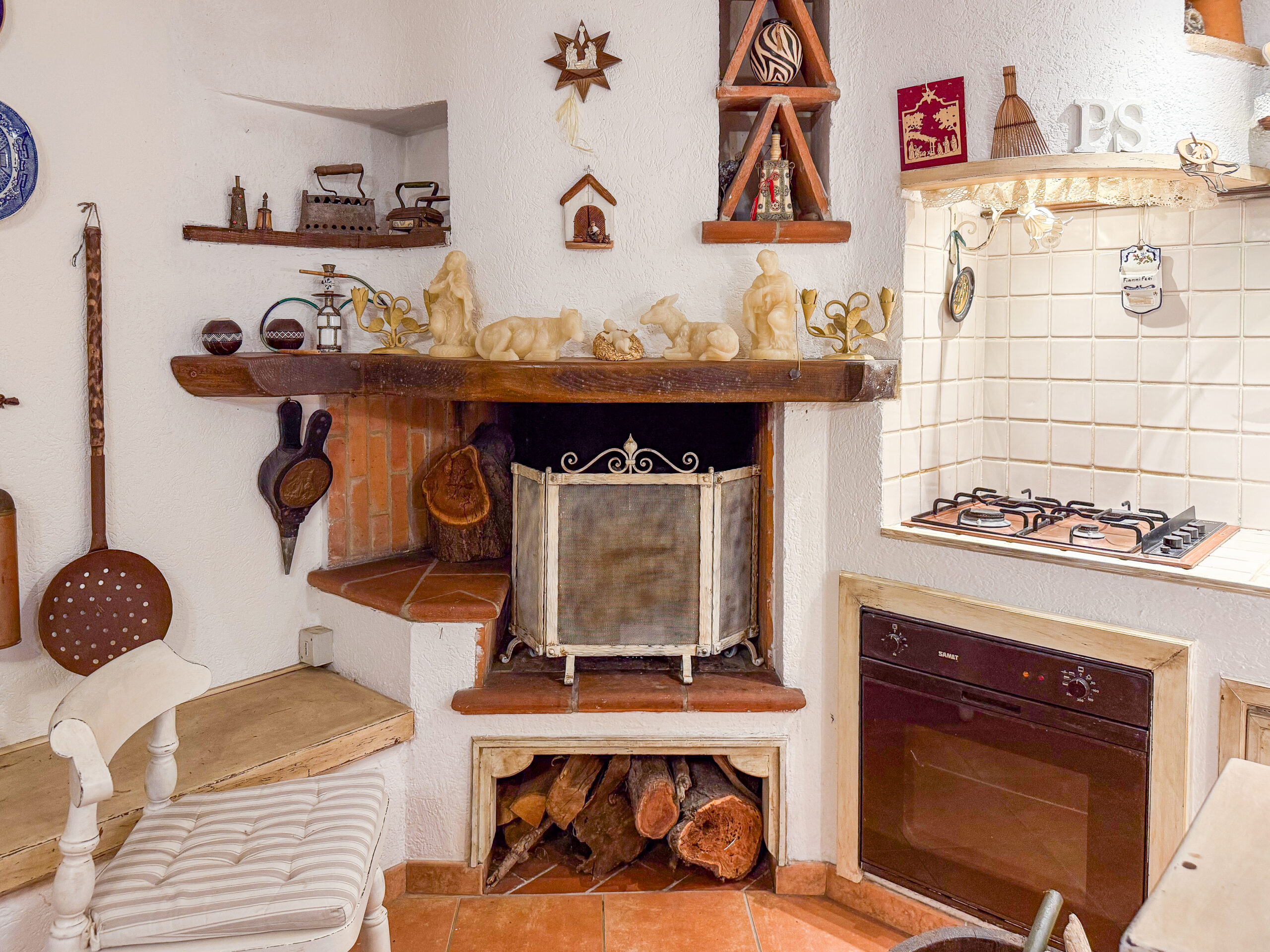 Taverna al piano seminterrato di oltre 30 mq con camino e ripostiglio e una terza cucina.
